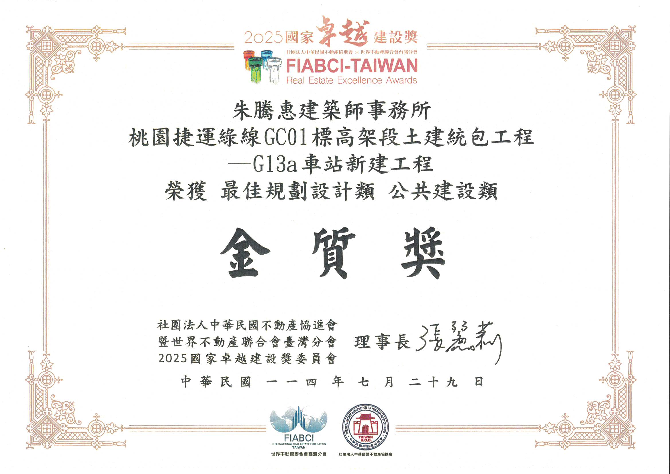 桃園捷運綠線GC01標高架段土建統包工程─G13a車站新建工程 - 榮獲國家卓越金質獎 最佳規劃設計類